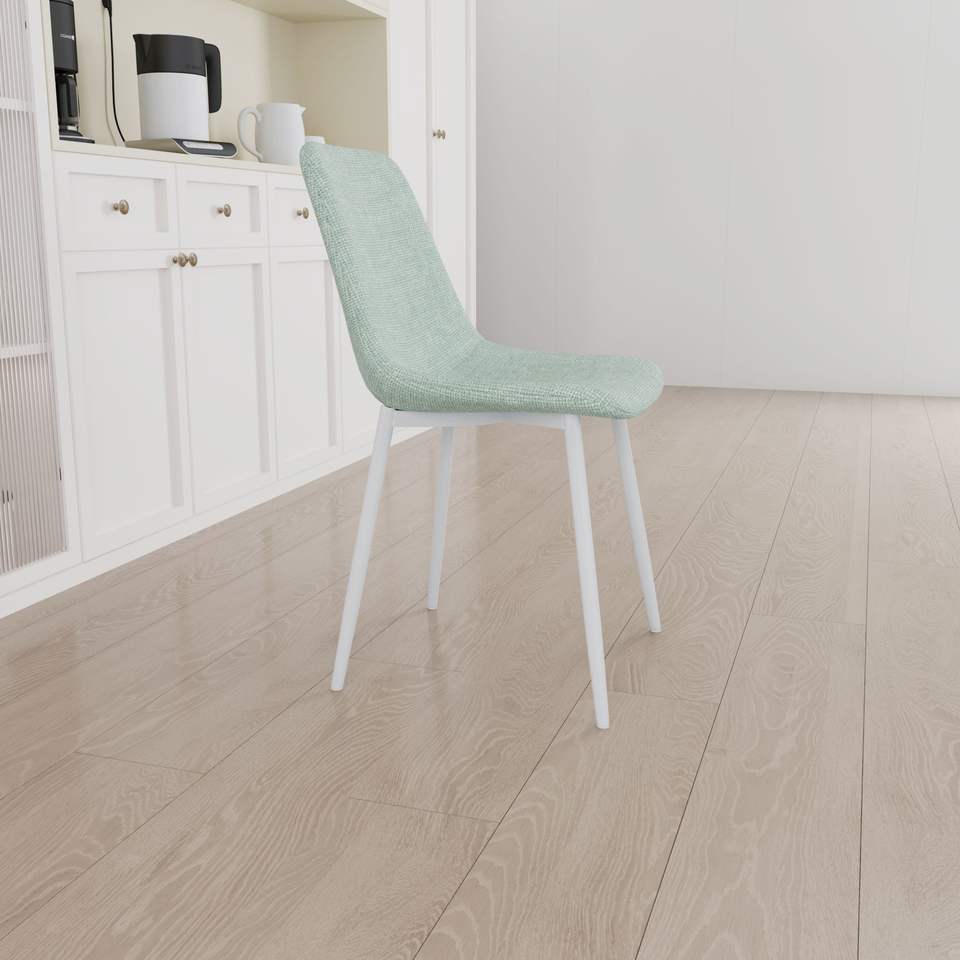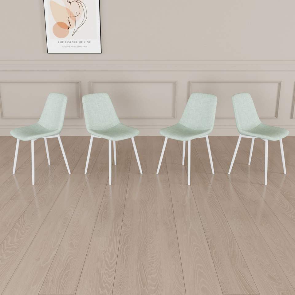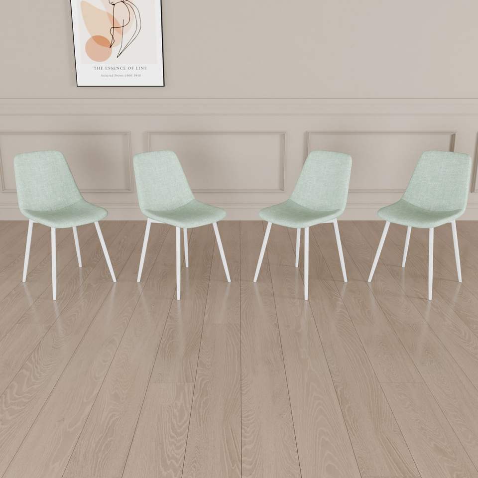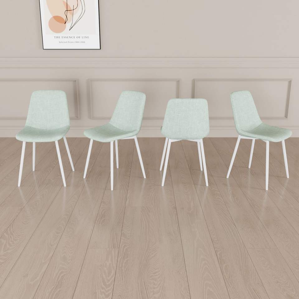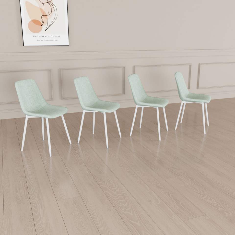 Set di 4 Sedie da Pranzo Moderne Imbottite in Lino con Robuste Gambe in Metallo Bianco, Sedie Decorate per Sala da Pranzo