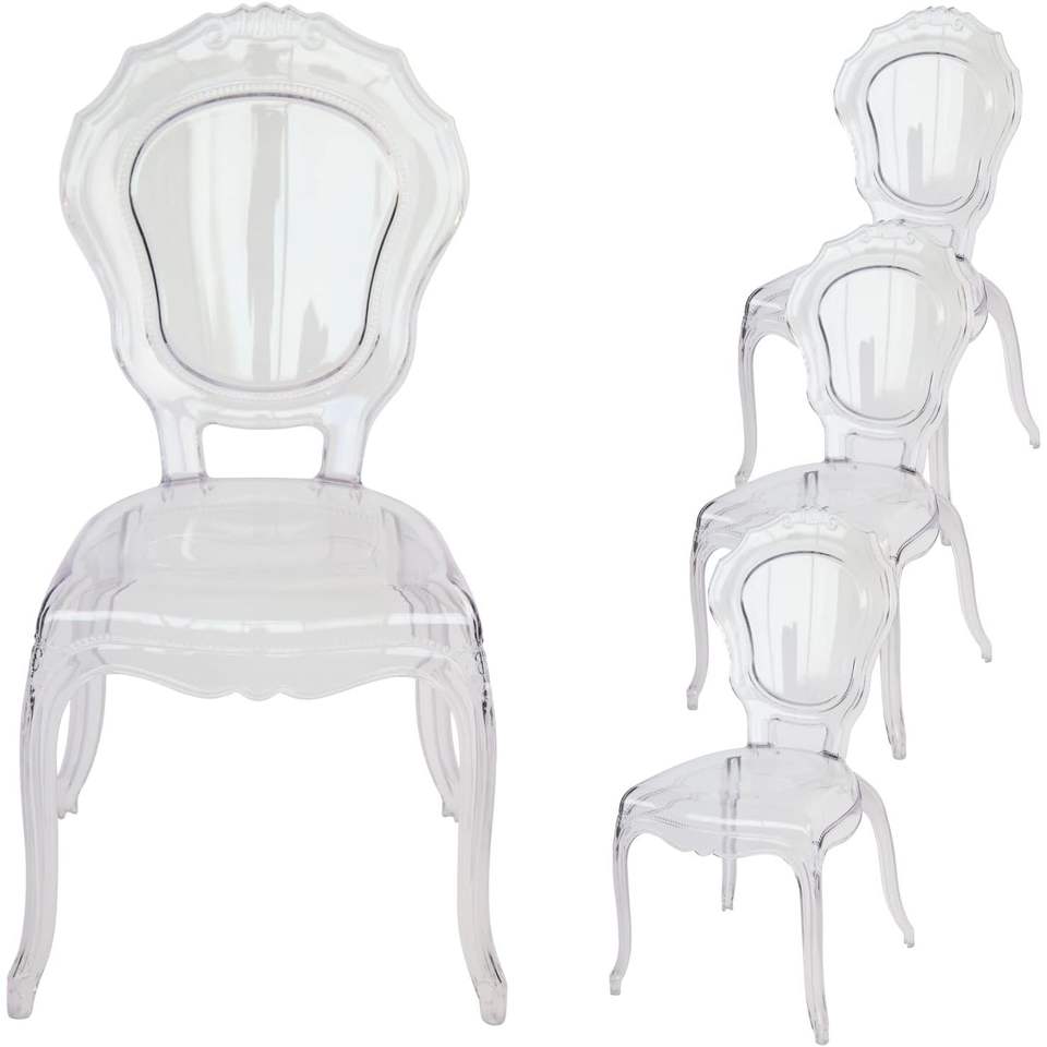 Set of 4 Modern Transparent Accent Side Chairs Belle Style Clear Ghost Stackable Chairs for Events Weddings Banquets