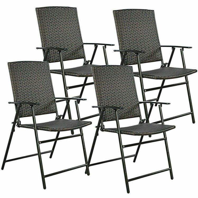 Set di 4 Sedie Pieghevoli in Rattan