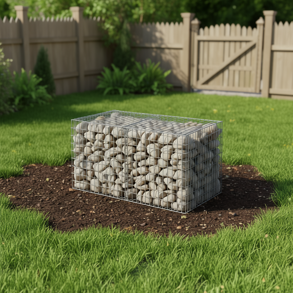 Cesto Gabion Rettangolare, Confezione da 4, in Acciaio Zincato per Recinzioni Esterne e Giardino