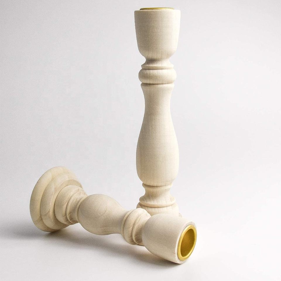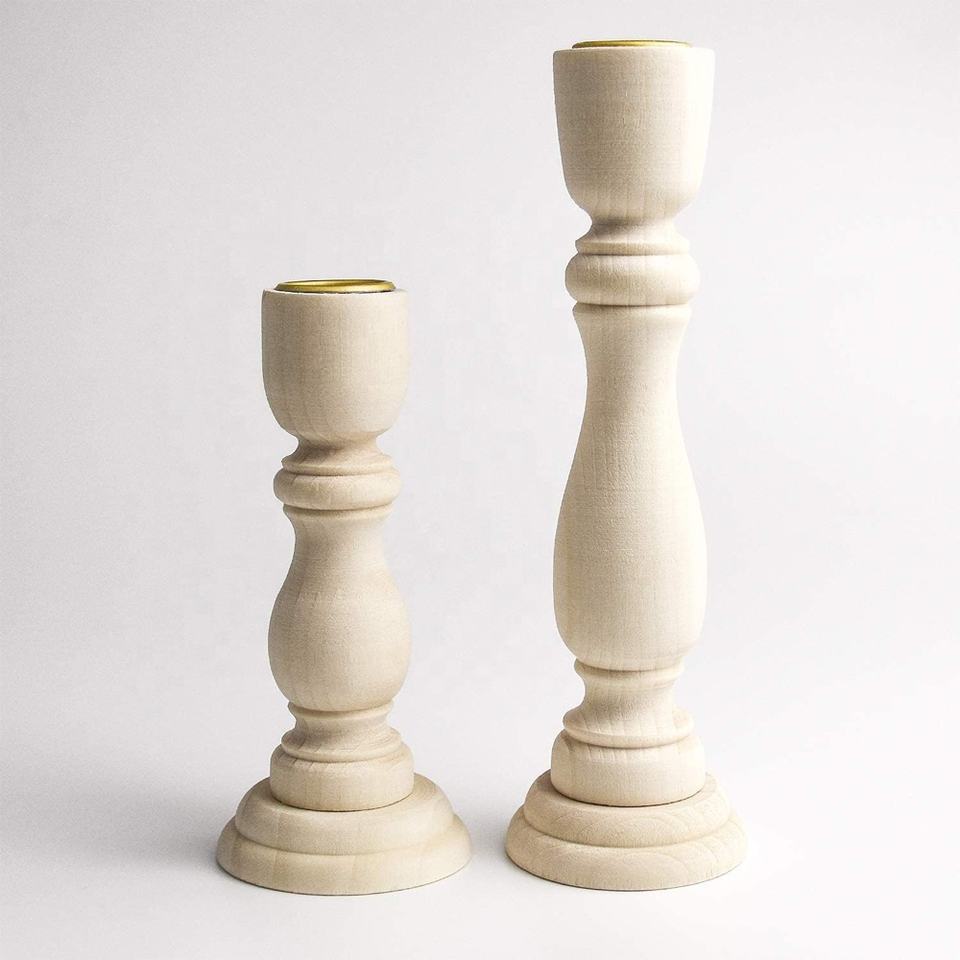 Set di 4 candelabri in legno non finito per porta candele in legno con centro coppa in metallo