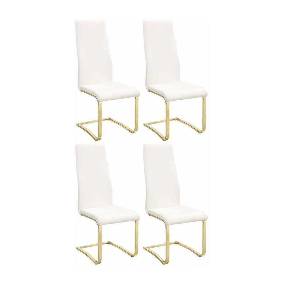 Set di 4 sedie da pranzo imbottite in similpelle bianca e oro