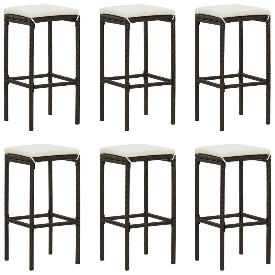 Set di 6 Sgabelli da Bar in Rattan PE Marrone con Poggiapiedi Standard