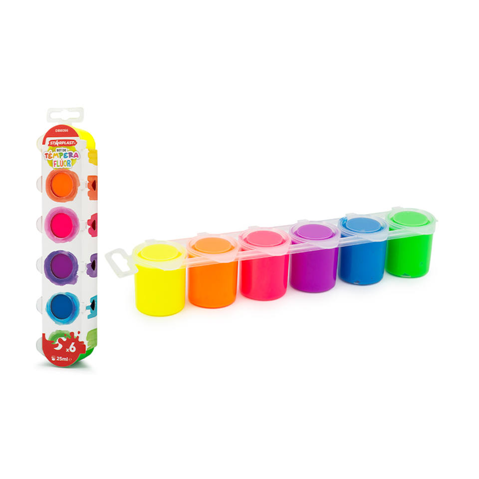 Set of 6 Fluorescent 25ml Tempera Acrylic Paint Pots for Art Painting on Glass & Canvas EN71 Certified with Pigment Material