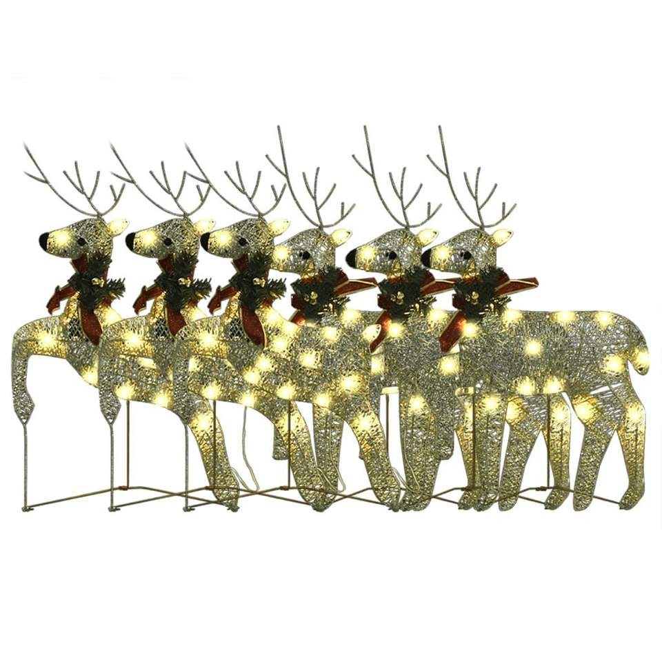 Set of 6 Gold Mesh Reindeer Medium Metal Christmas Decorations