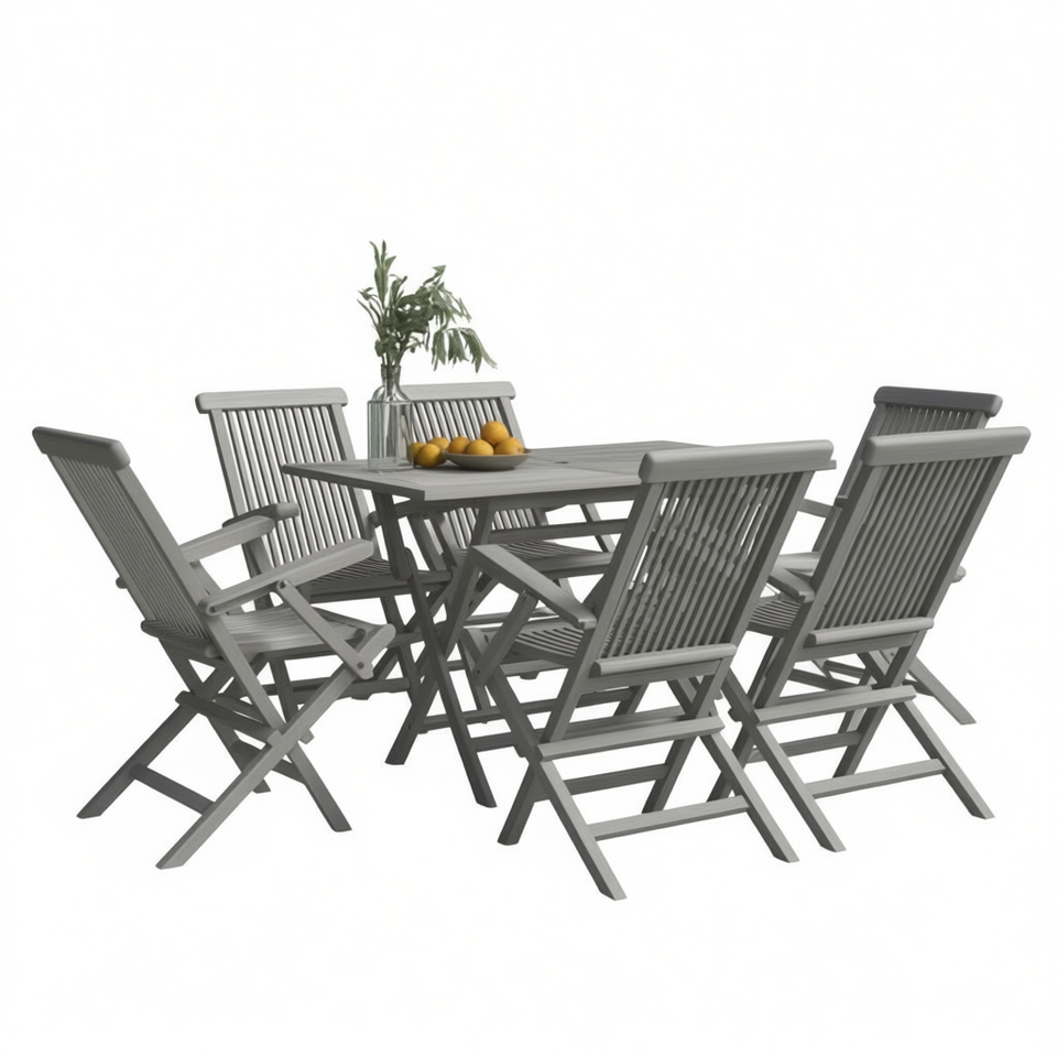 Grey Solid Teak Wood Folding Garden Chairs Set 6 Piece Outdoor Furniture Standard Design