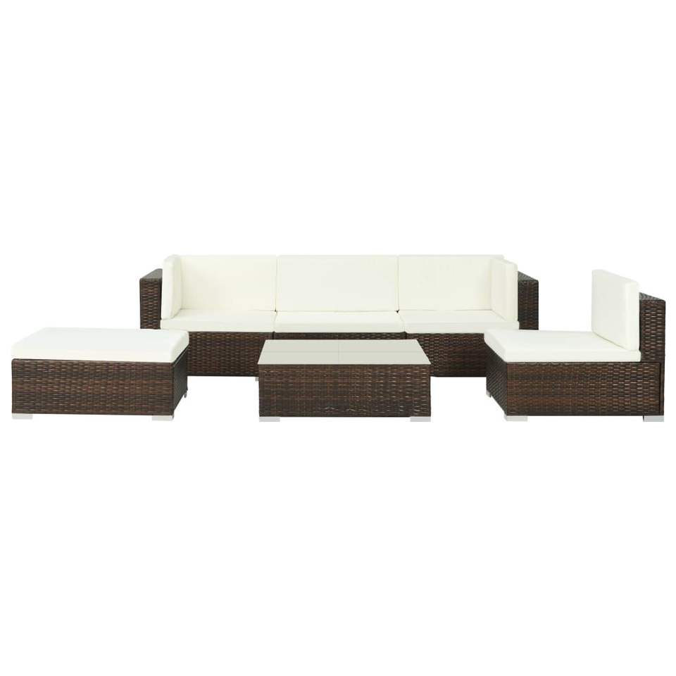 Set di 6 Grandi Divani Modulari da Giardino in Polyrattan Marrone