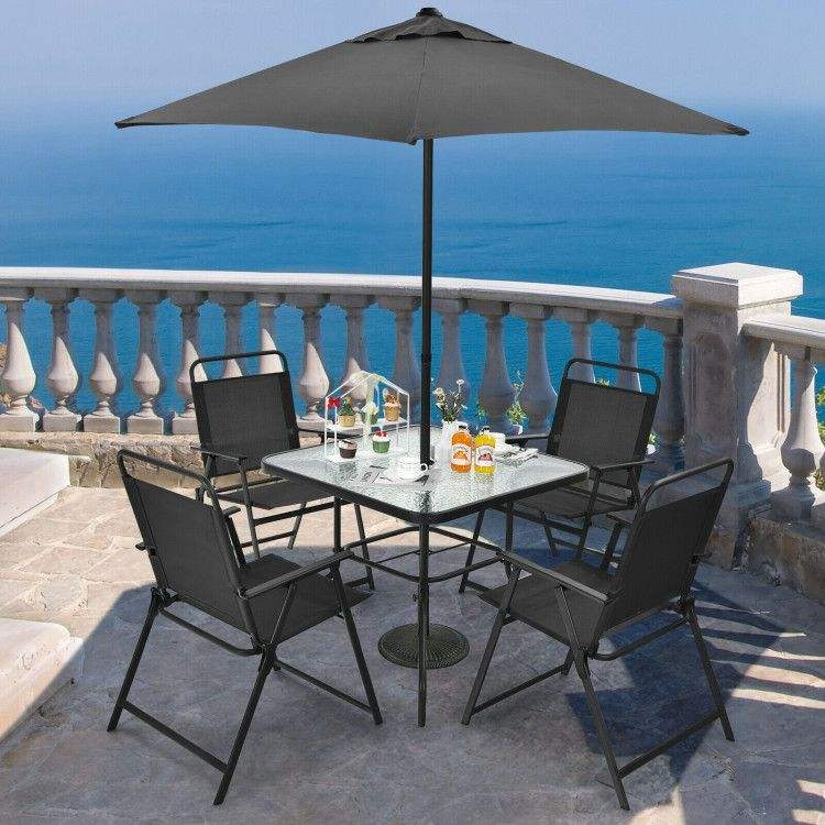 Set da Pranzo da Esterno Grigio a 6 Pezzi con Ombrellone per Giardino