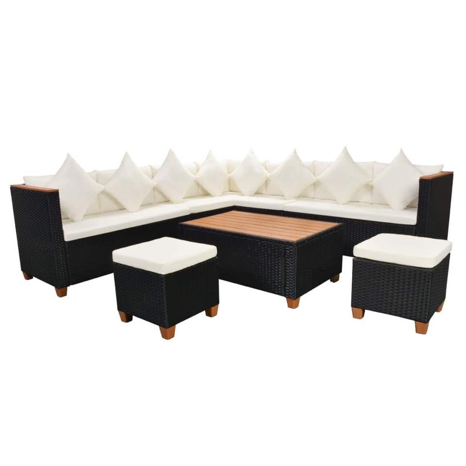 Set di 7 Grandi Pezzi di Mobili da Giardino in Polyrattan Nero, Eleganti Set da Esterno