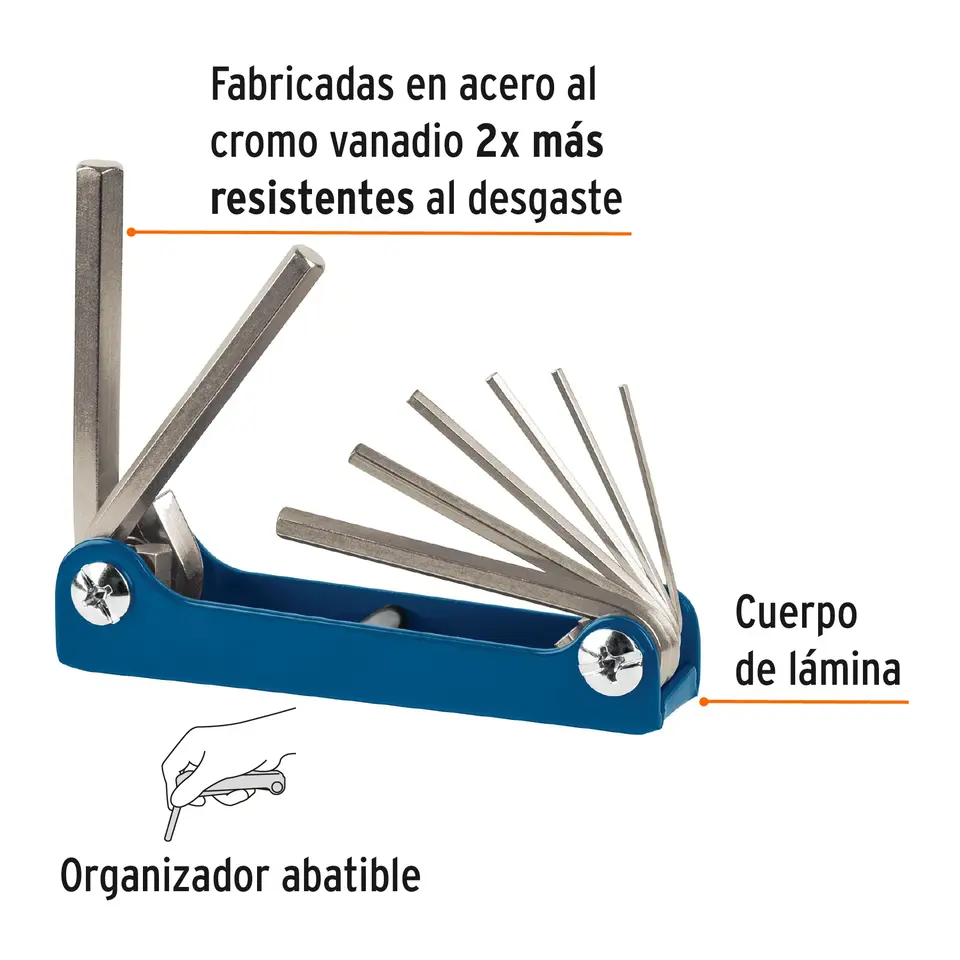BOX 6 Set of 8 mm Hex Keys, Knife Type, TRUPER