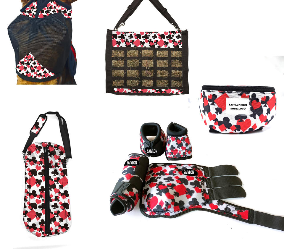 Set di attrezzature per cavalli che cavalcano stivali sportivi sacchetti di fieno mosca maschera stampa giocatore