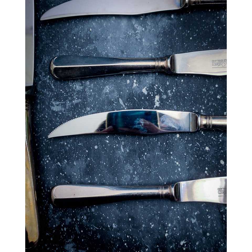 Set di Sei Coltelli da Tavola Inglese del Principio del Novecento con Manico in Sheffield
