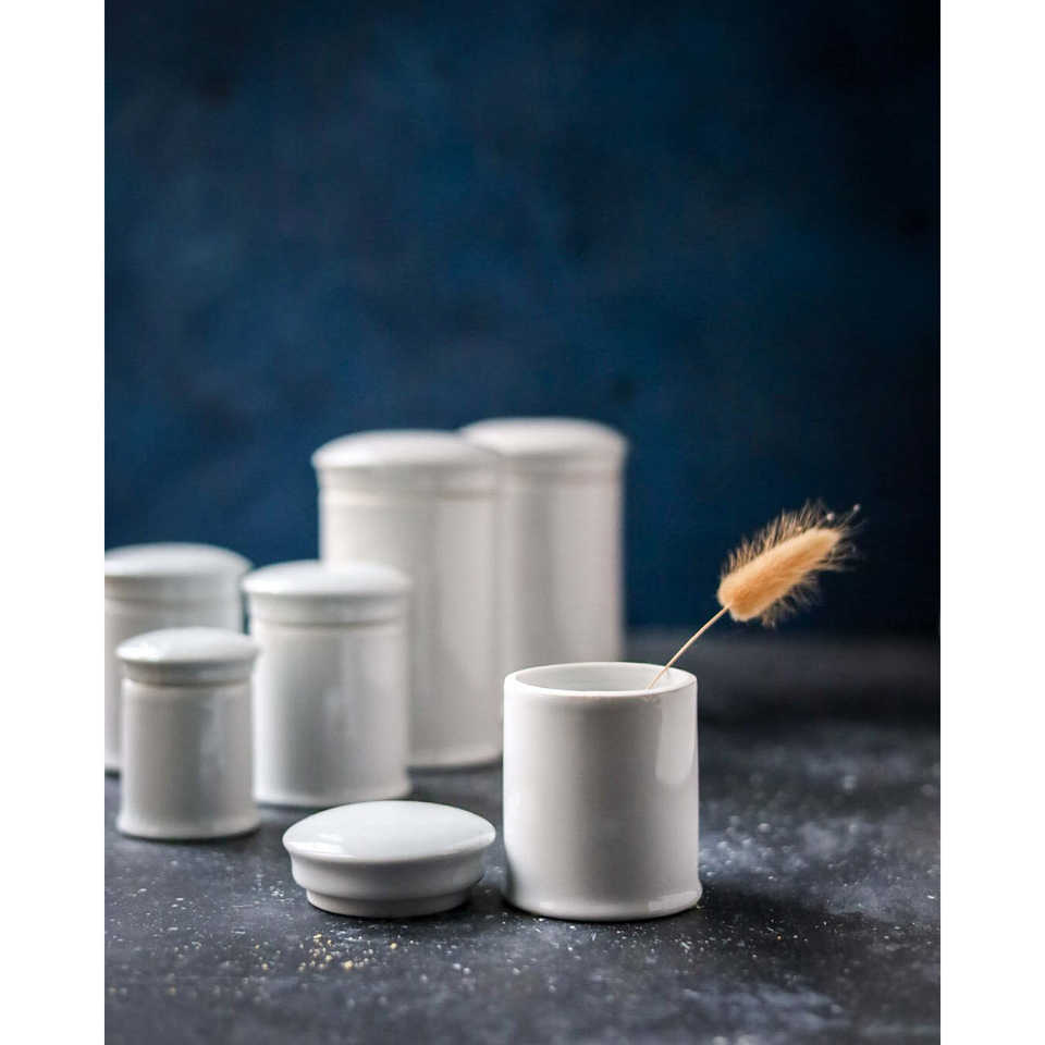 Daniele F. Set of Six Eco-Friendly White Porcelain Storage Bottles Customizable Size Boxed with Custom Logo