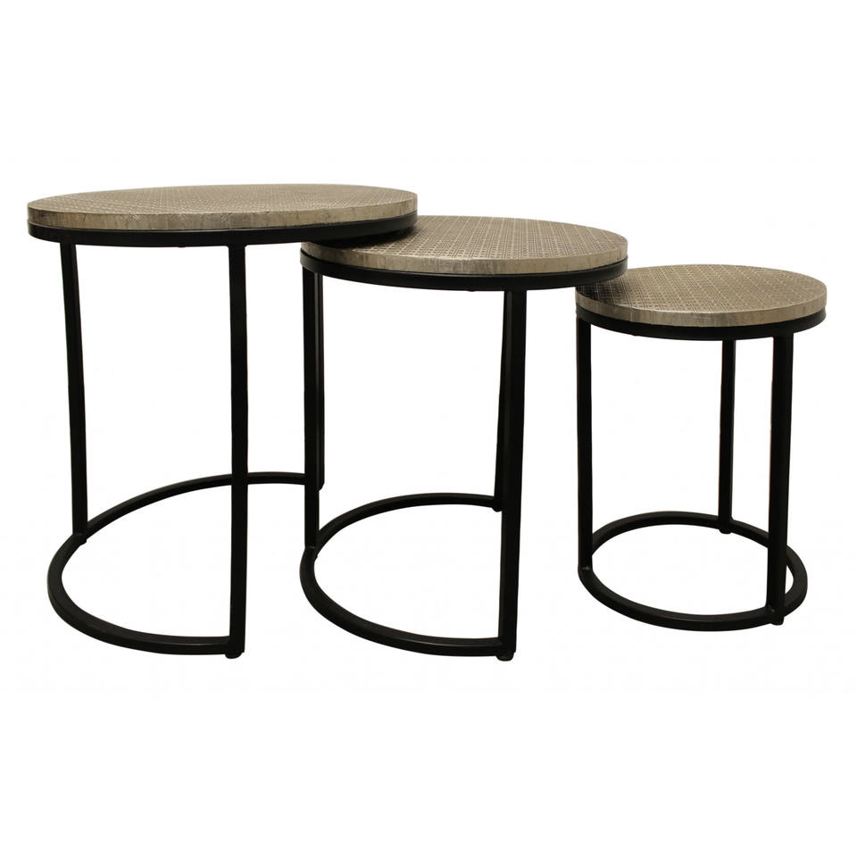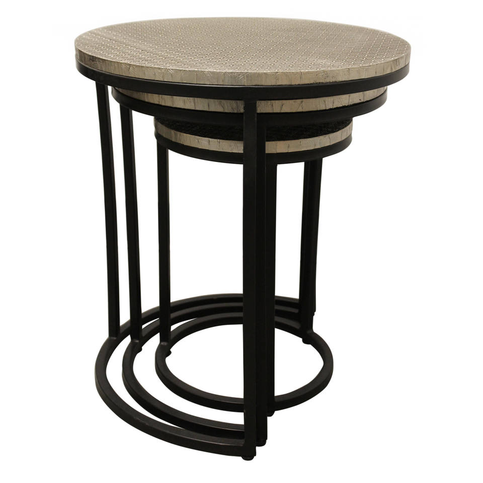 Set of Three 19\" Black and Silver Round Nested Tables HMS Living Room Furniture