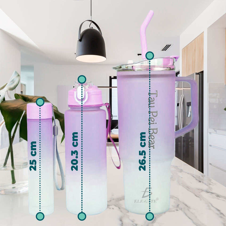 Set di Tre Bottiglie Sportive con Diverse Dimensioni e Tipi di Coperchi