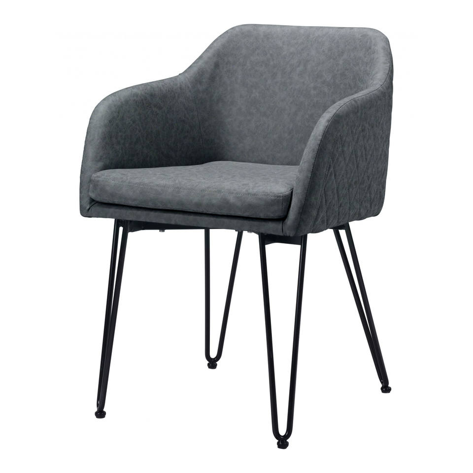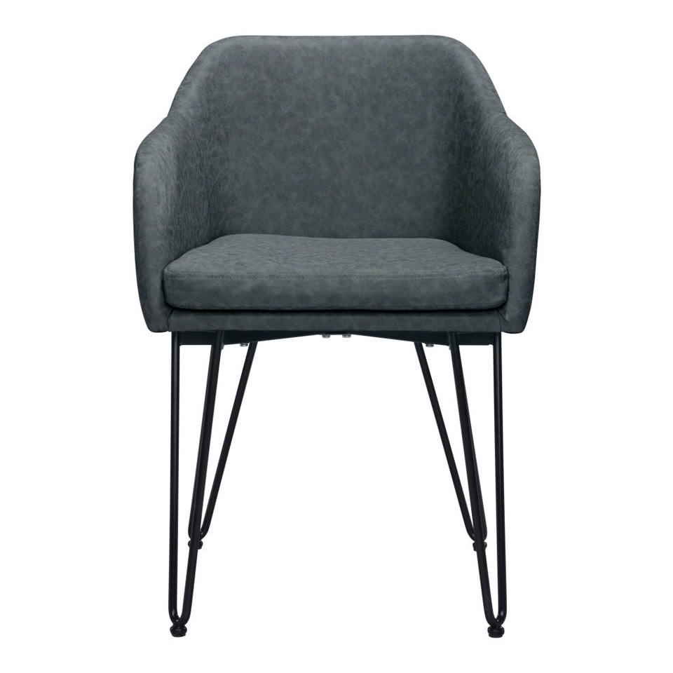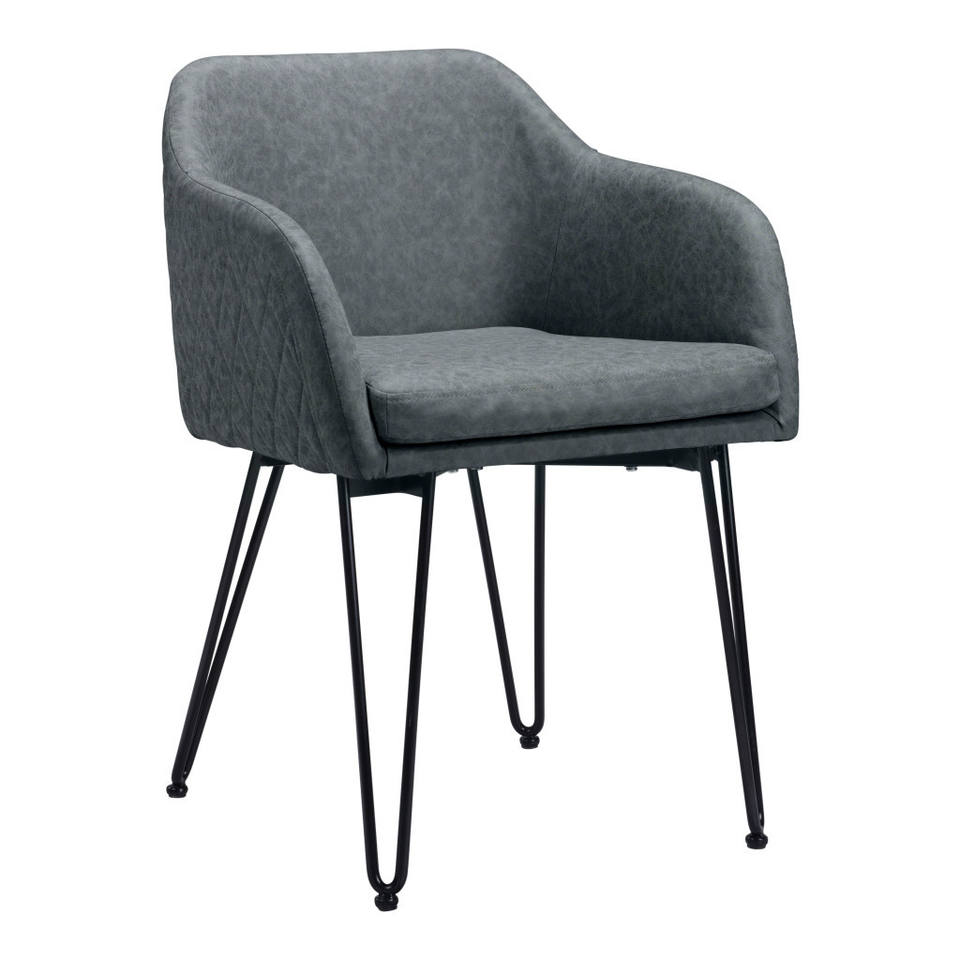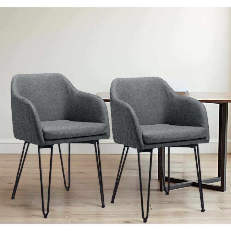 Set of Two Gray and Black Faux Leather Dining Arm Chairs Upholstered in Gray and Black HMSS Collection