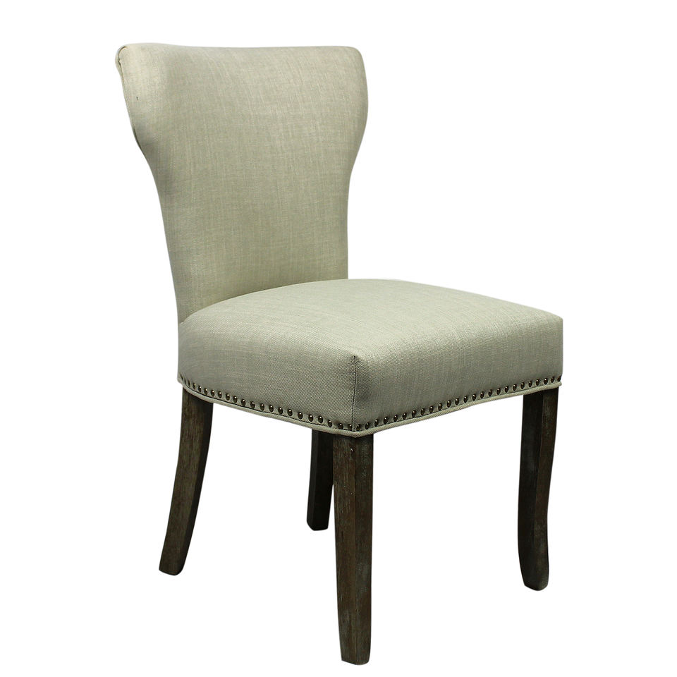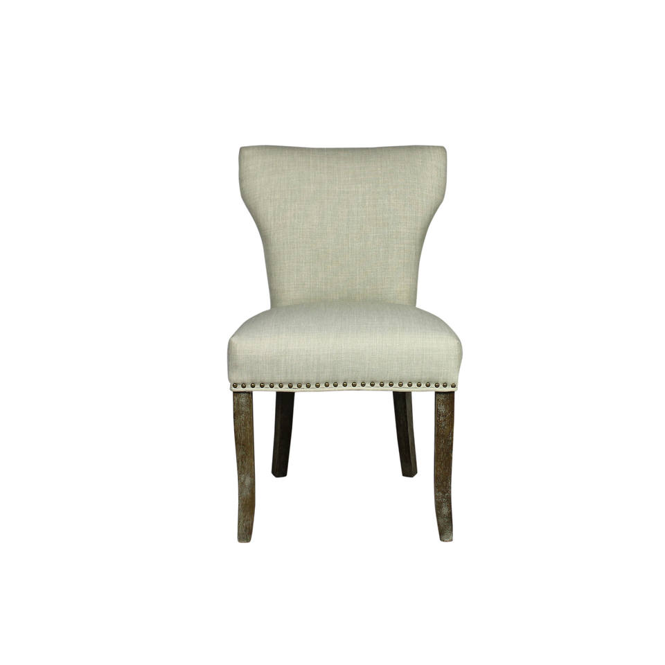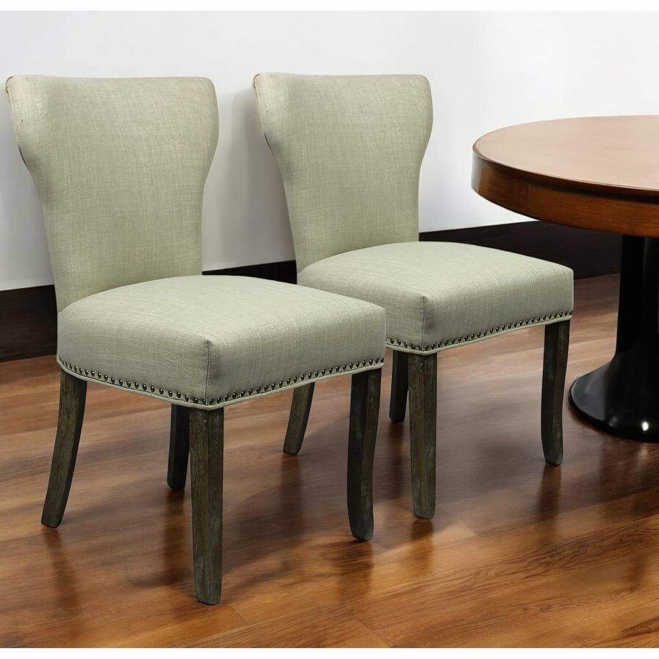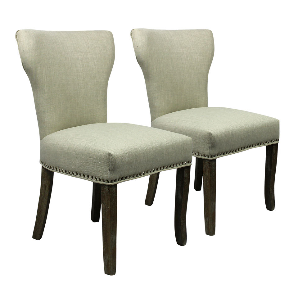 Set of Two Ivory and Brown Upholstered Fabric Dining Parsons Chairs HMS Model