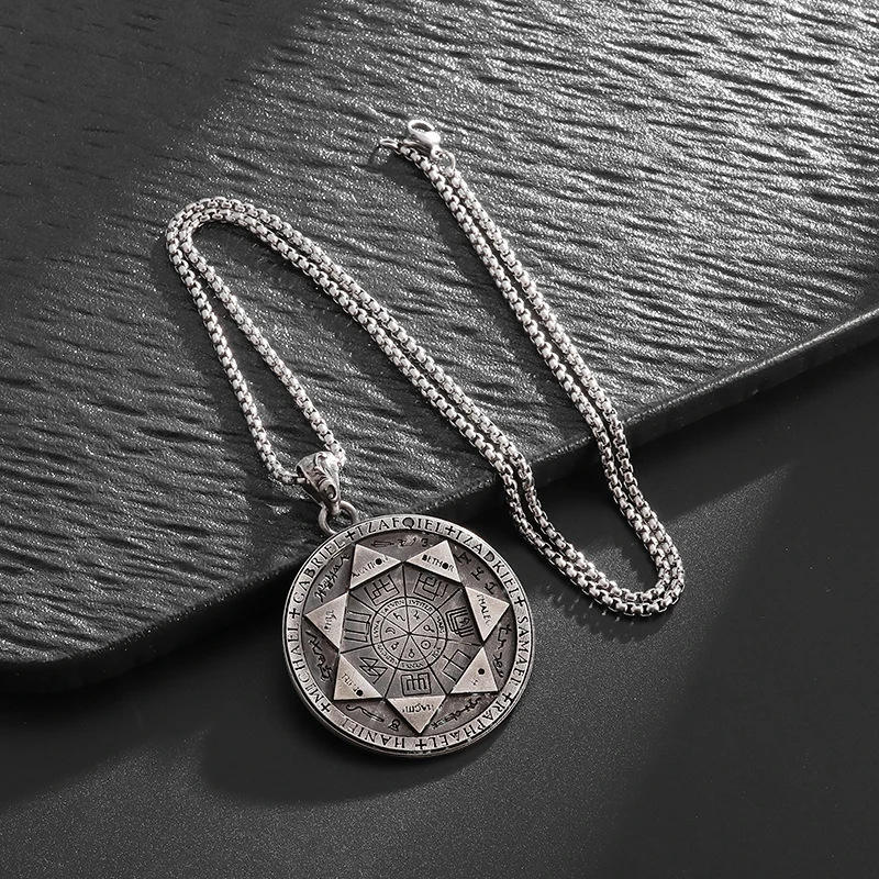 Ciondolo collana con sigillo di sette angeli cerchio magico di Salomone per uomo personalizzato regalo di gioielli con amuleto Punk portafortuna