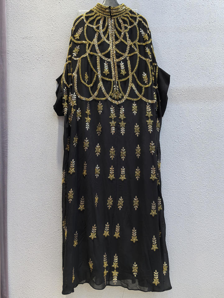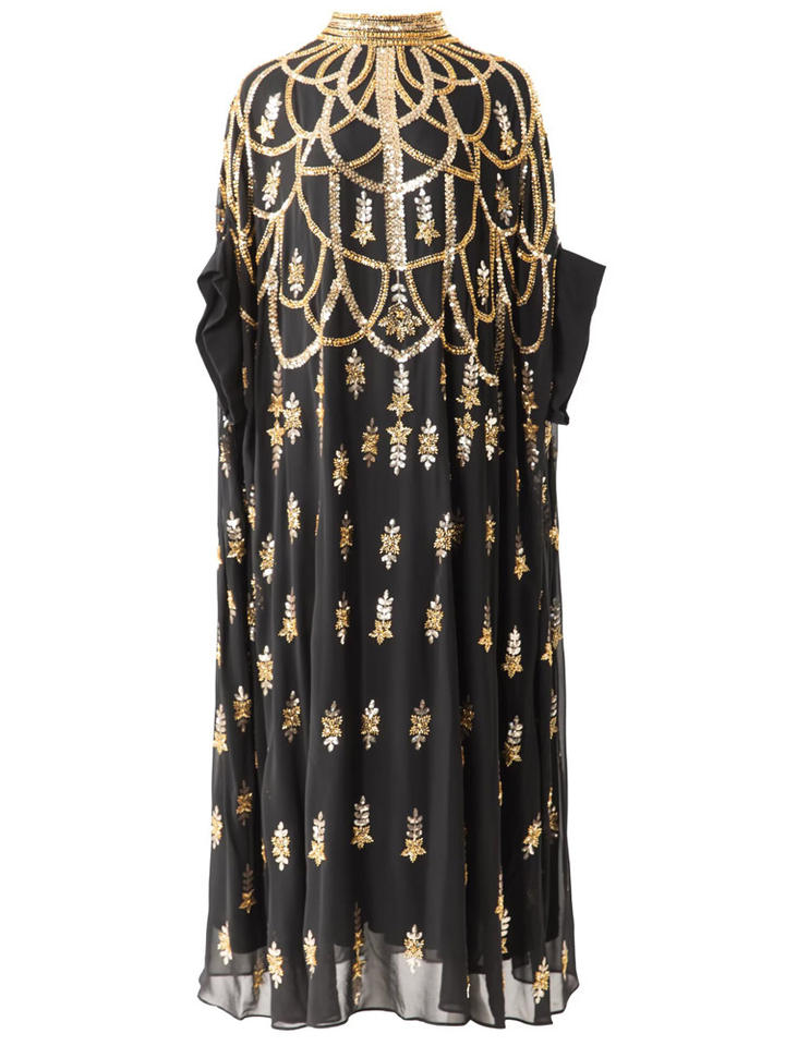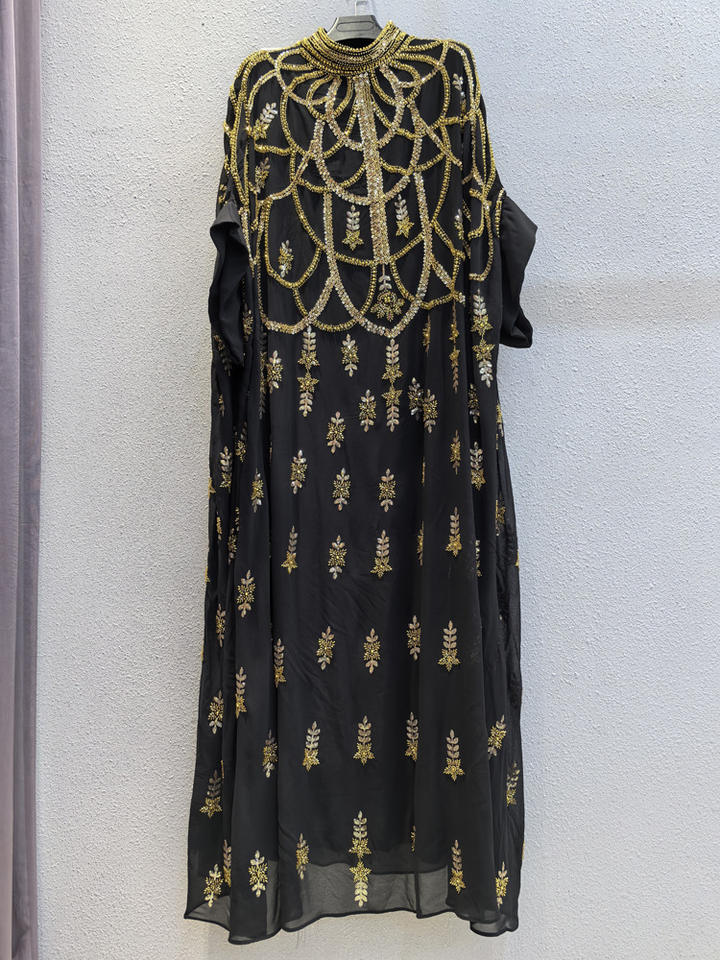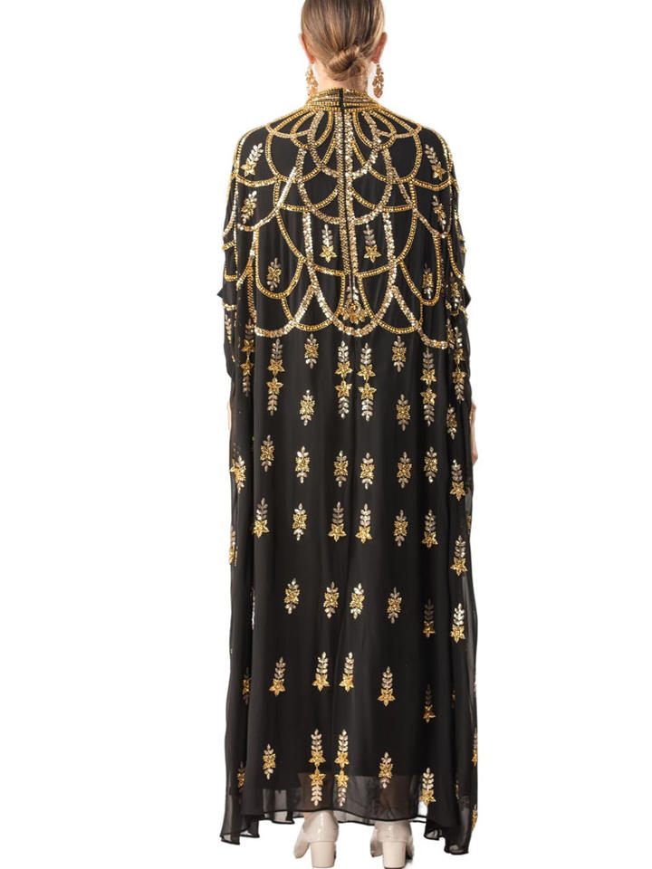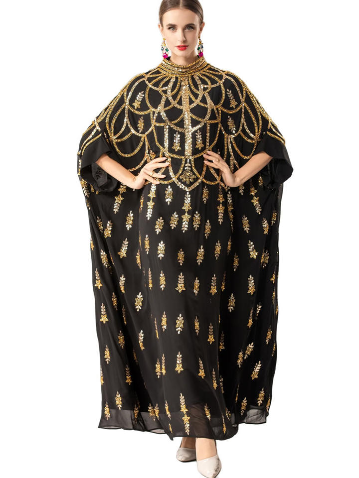 Abito Lungo con Paillettes a Sette Colori per Ramadan 2026, Colletto Piccolo Rialzato, Maniche a Pipistrello e Ampia Gonna