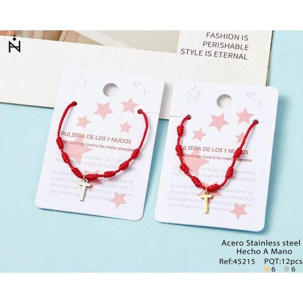 Braccialetto a Sette Nodi con Cordoncino Rosso e Ciondolo a Croce in Acciaio Inossidabile, Gioiello Religioso Fatto a Mano, Regalo Unisex