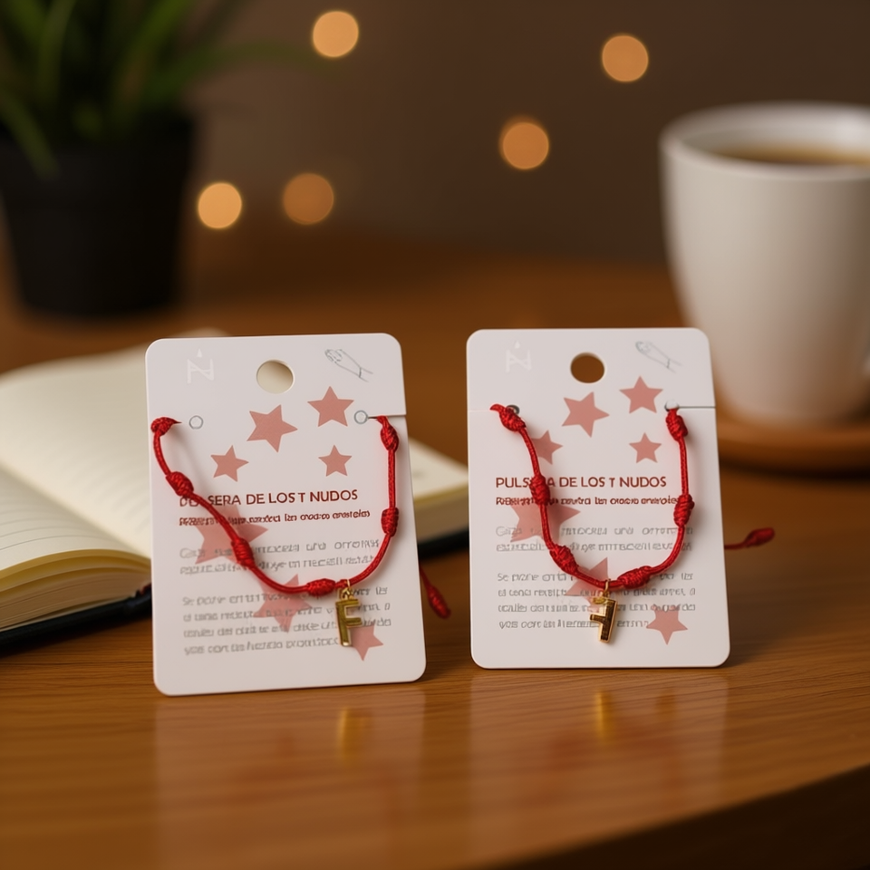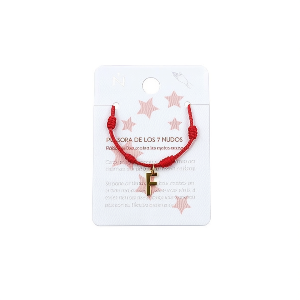 Braccialetto con Nodo a Sette Stelle, Lettera F, Filo Rosso, Charm Dorato, Bracciale con Cordoncino Sottile