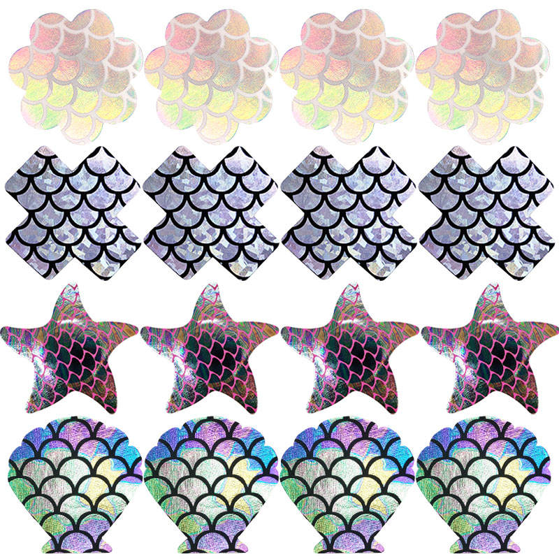 Sexy 1 paio di copri capezzolo di colore misto lucidi forma a scaglie di pesce adesivi autoadesivi monouso petali di petto capezzolo pasticcini