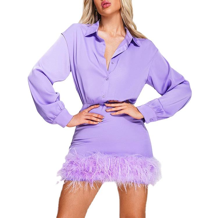 Sexy Club Women Mini Party Dress Customize Brand Spring Summer Casual Wear Purple Fitted Skirt Feather Shirt Women's Dresses