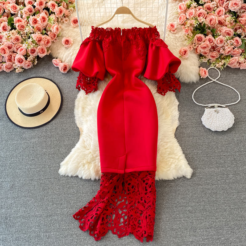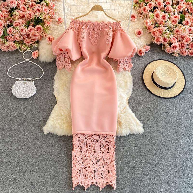 Abito lungo aderente in pizzo Sexy traforato da donna elegante Patchwork Maxi Party Vestidos primavera nuovo