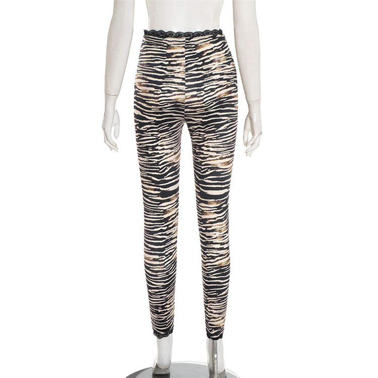 Sexy Hottie Lace Edge Bow Decoration Leopard Print Slim Pants New Women'S Fashion Street Casual Trouser
