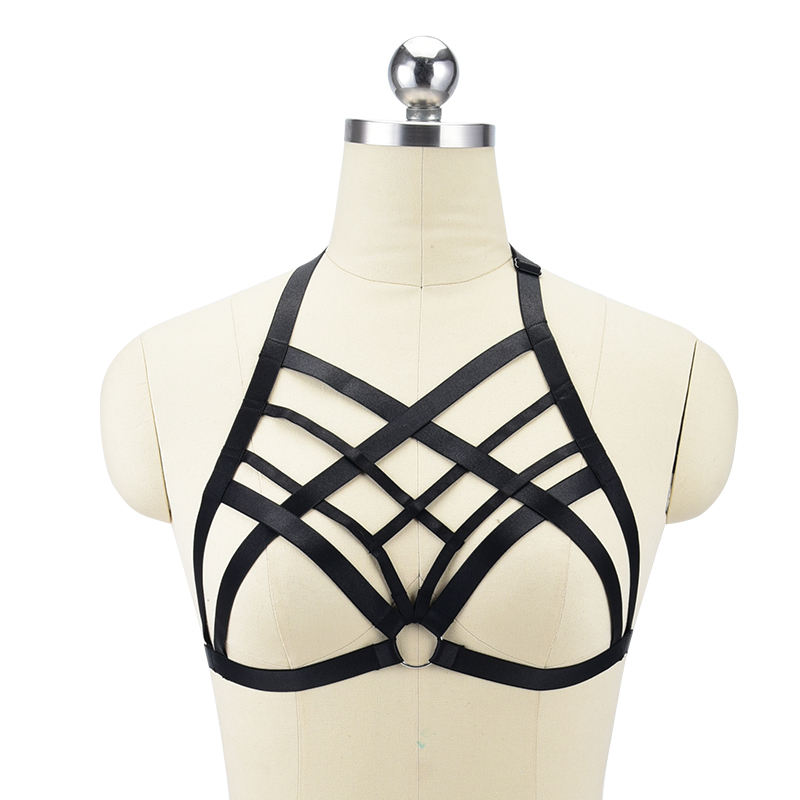 Sexy Lingerie Goth Rave Del Corpo Harness Cage Bra Pole Dance Fantasie Erotiche, sexy Fetish Usura Del Corpo Per Bondage Cage Harness Reggiseno