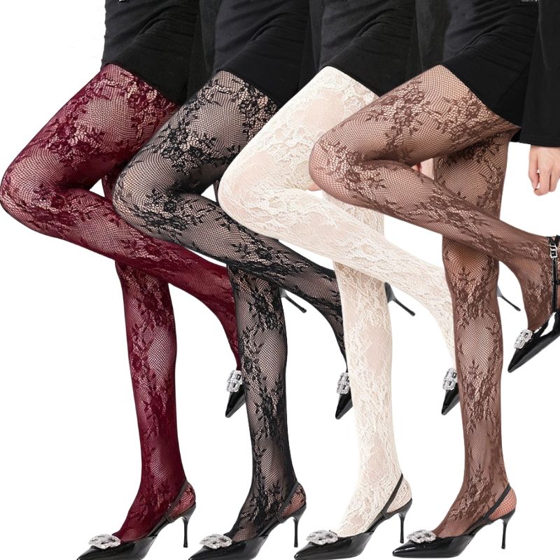 Hankai Collant a rete floreale ad alta elasticità da donna, effetto traforato