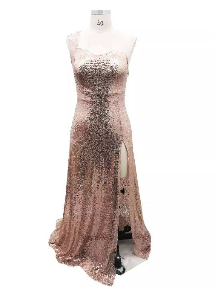 Sexy One-shoulder Sleeveless Hot Gold Dress Slit Dress Female Evening Maxi Dress Elegant Woman