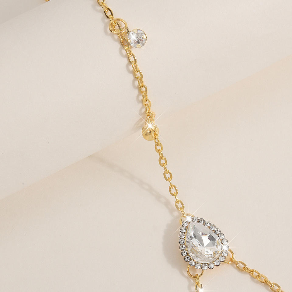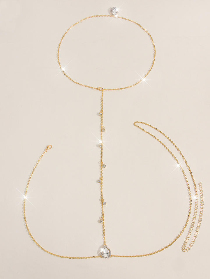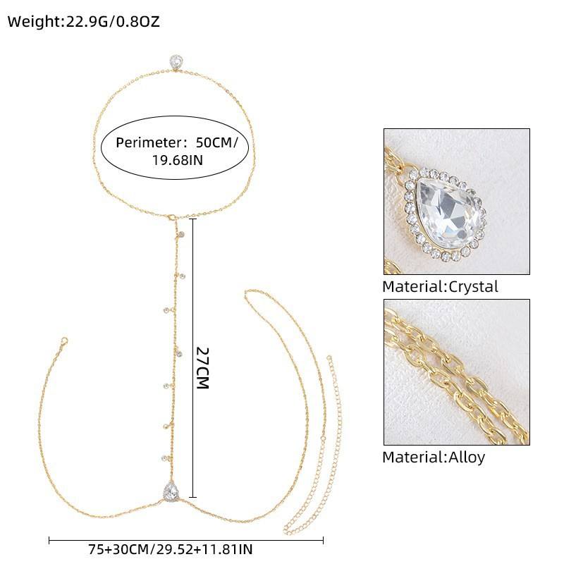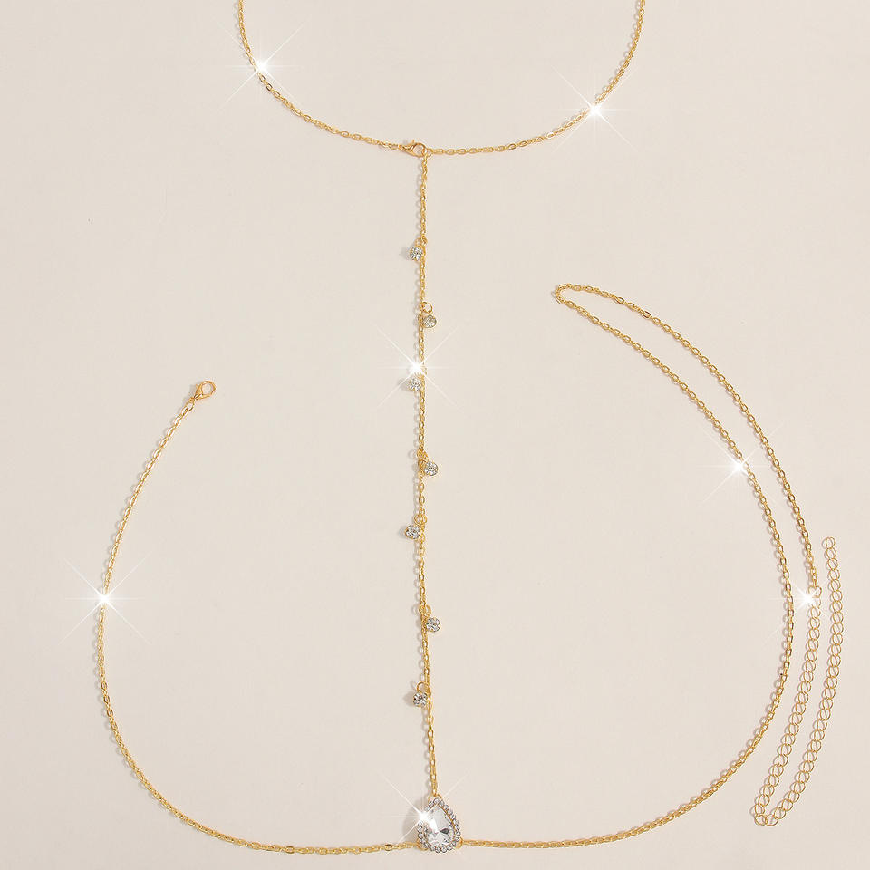 Catena per il corpo da donna alla moda, stile Sexy Pure Desire, con catena da collo, vita e petto, con gocce d'acqua lucide e cristalli placcati elettroliticamente