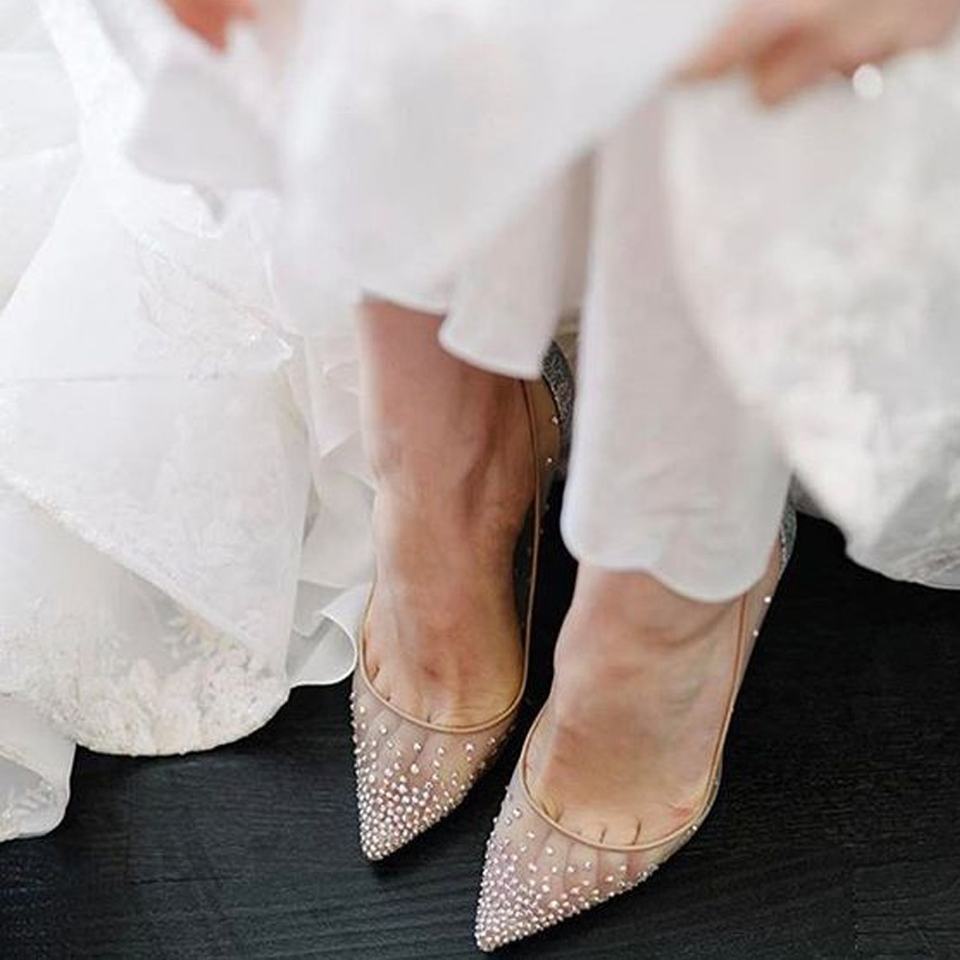Sexy scarpe a spillo donna partito punta a punta donna strass Glitter tacchi argento signore tacchi alti pompe cristalli scarpe da sposa