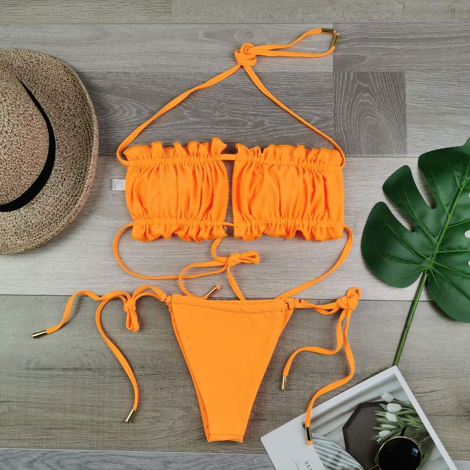 Sexy Women String Bikini Strapless Swimwear Two Pieces Thong Bikinis Bandeau Swimsuit Female Bandage Bathing Suit Micro Bikini