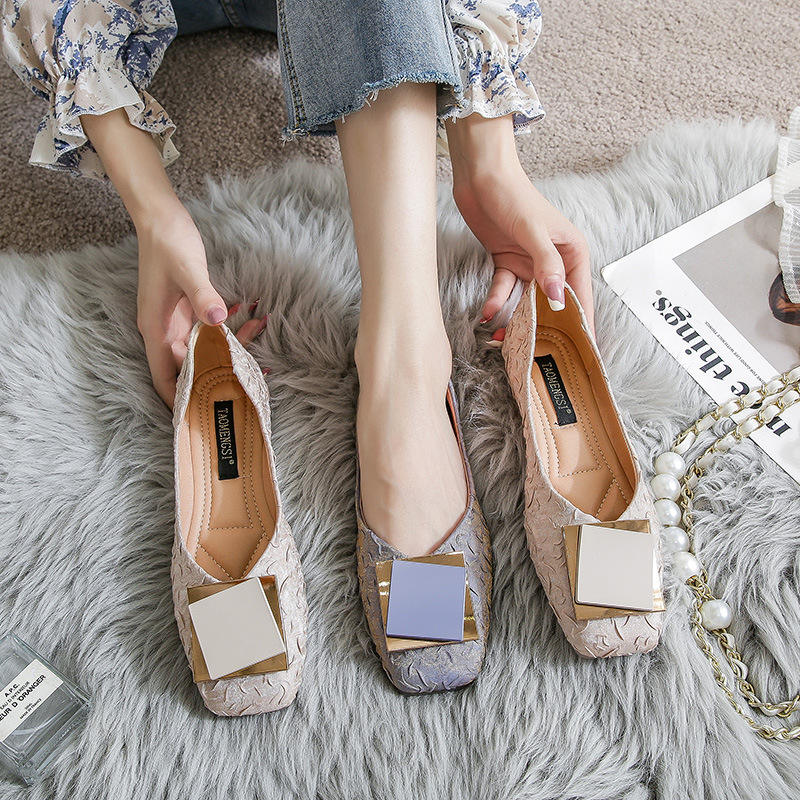 Sh12272a Women Flat Shoes 2023 Casual Fashion Slip-on Ballerina Flats Patent Ladies Spring Autumn Footwear With Metal Buckle