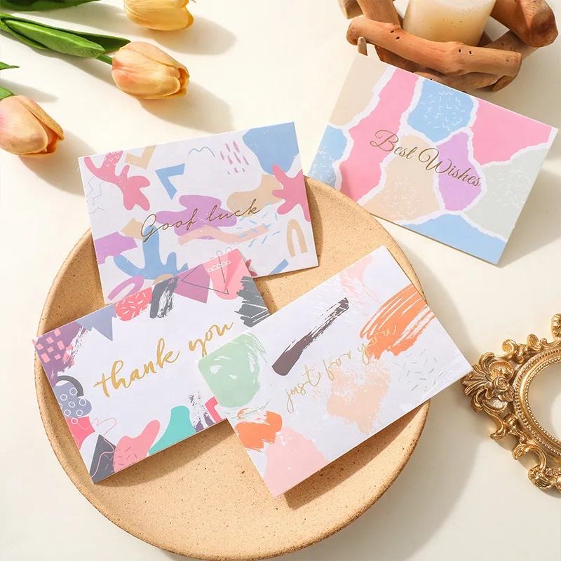 Shaped Pink English Thank You Greeting Card Digital Printed Newsprint Paper for Gift Wrapping