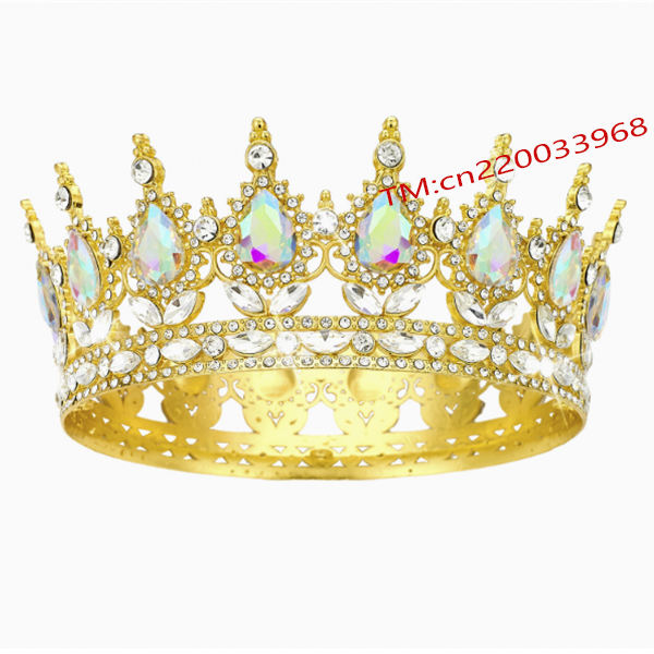 Condividi la moda di Zirconia con la corona di Tiara barocca di grandi re d'oro per lo spettacolo