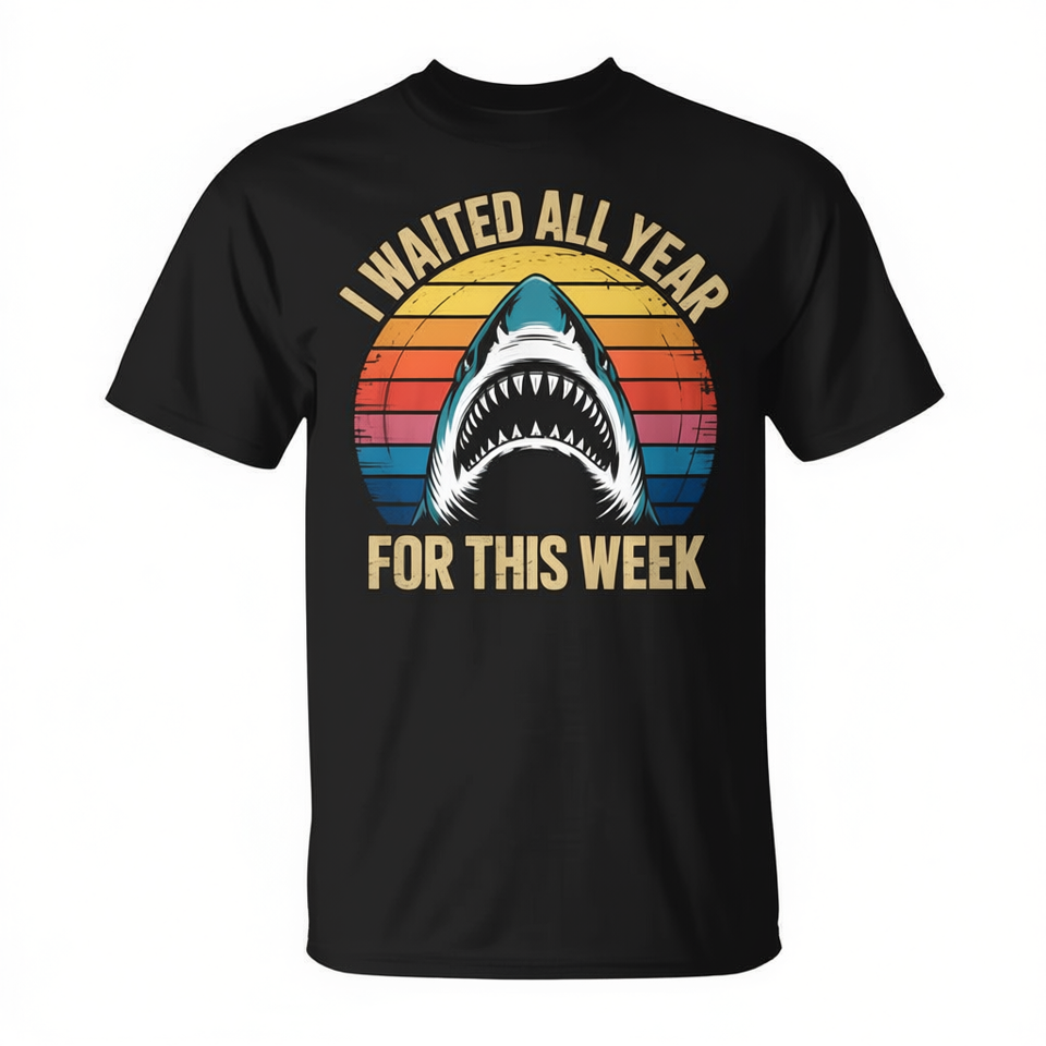 Shark Lover T-Shirt I Waited All Year For This Week Ocean Wildlife Design Black Adult Unisex