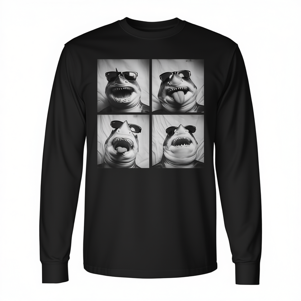 Squali con occhiali da sole, animali marini fantastici, meme divertenti, maglietta a maniche lunghe