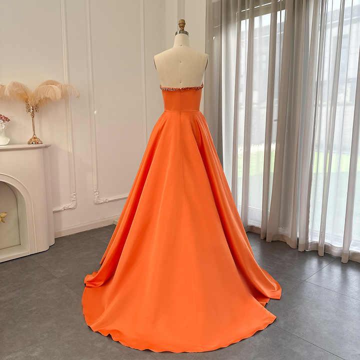 Abiti da Sera Arabi Sharon Said con Spacco, Cristalli di Dubai, Arancione e Fucsia per Donne, Abiti da Cerimonia Nuziale