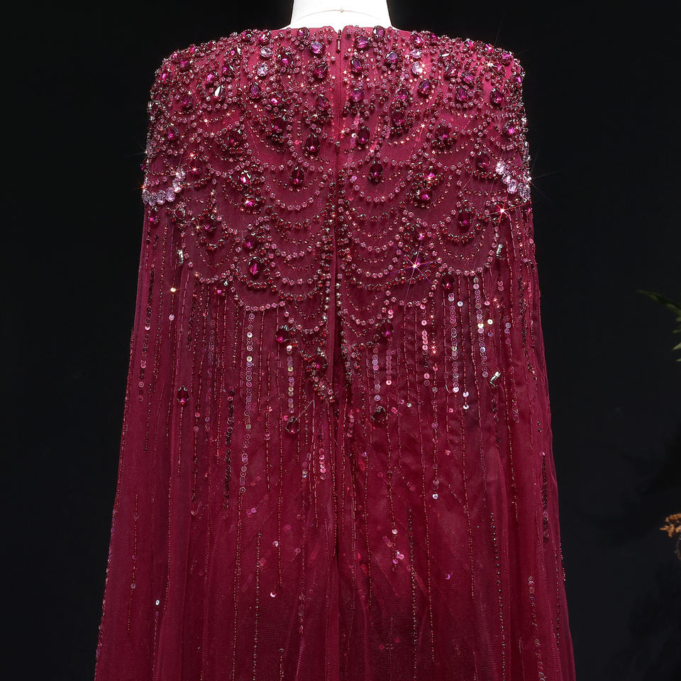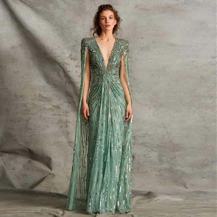 Sharon ha detto SS399 abiti da sera di lusso Dubai cristallo verde salvia con mantella oro fucsia elegante abito da festa di nozze da donna