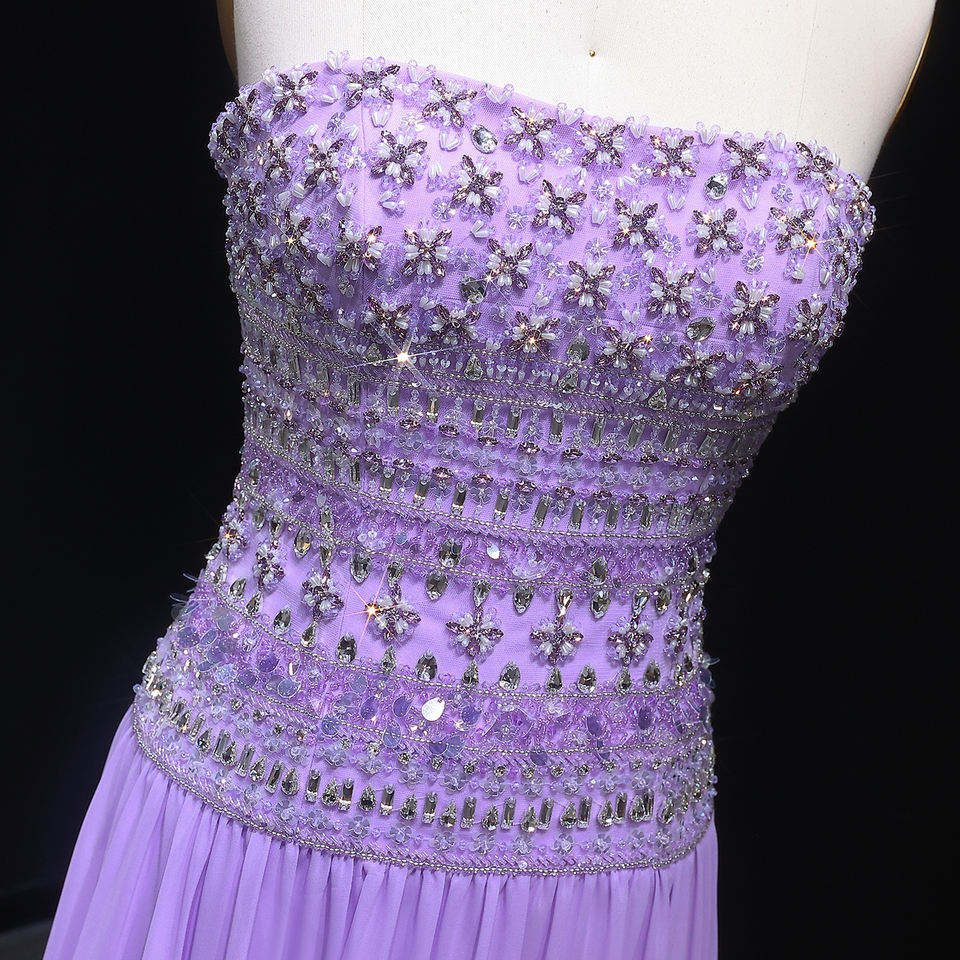 Abito da sera Sharon Said SS539 lilla senza spalline con corpetto decorato di perline e gonna fluida, abito da fidanzamento Dubai per donna, per feste di matrimonio