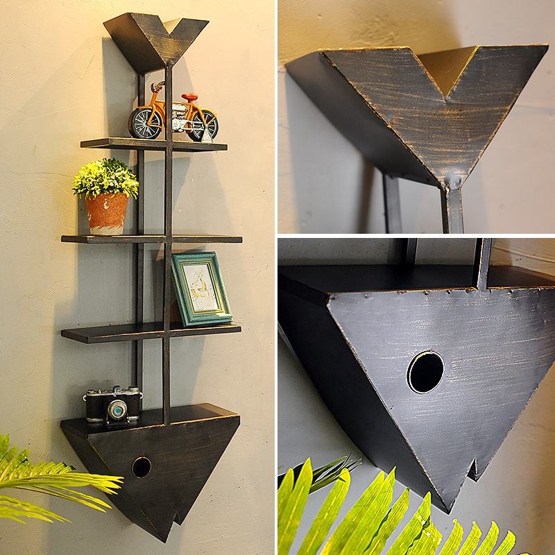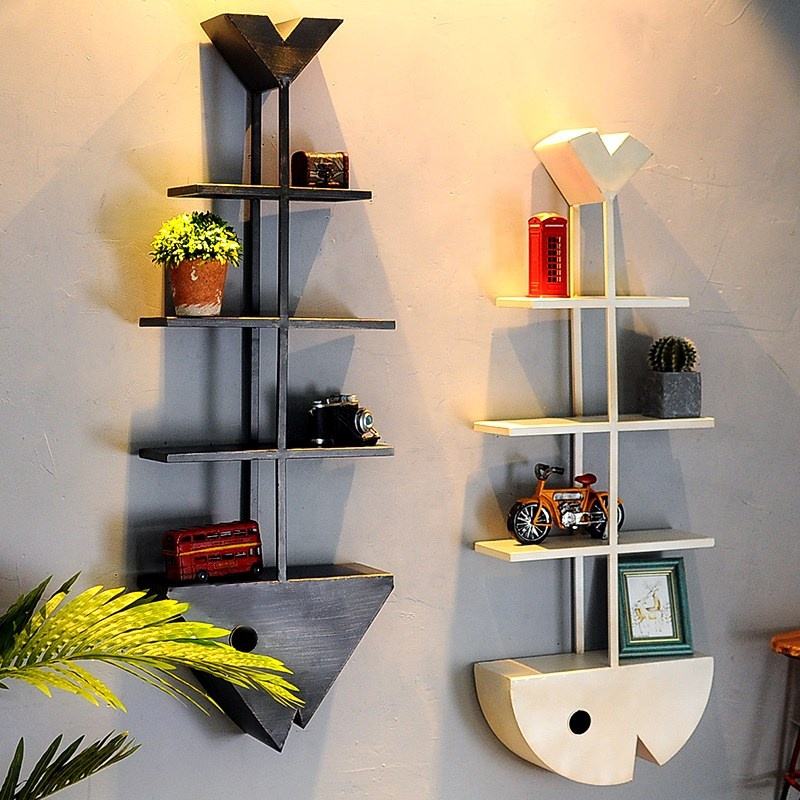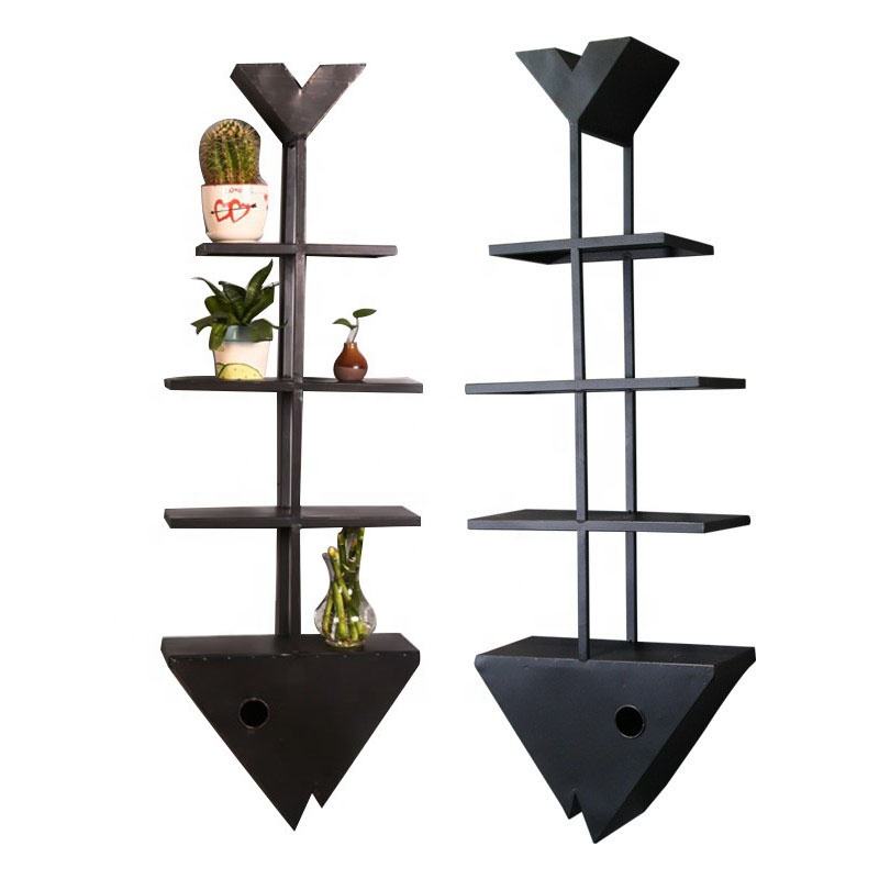 Mensola da Parete Vintage a Forma di Testa di Pesce in Ferro Nero, Portaoggetti Decorativo in Metallo per Casa