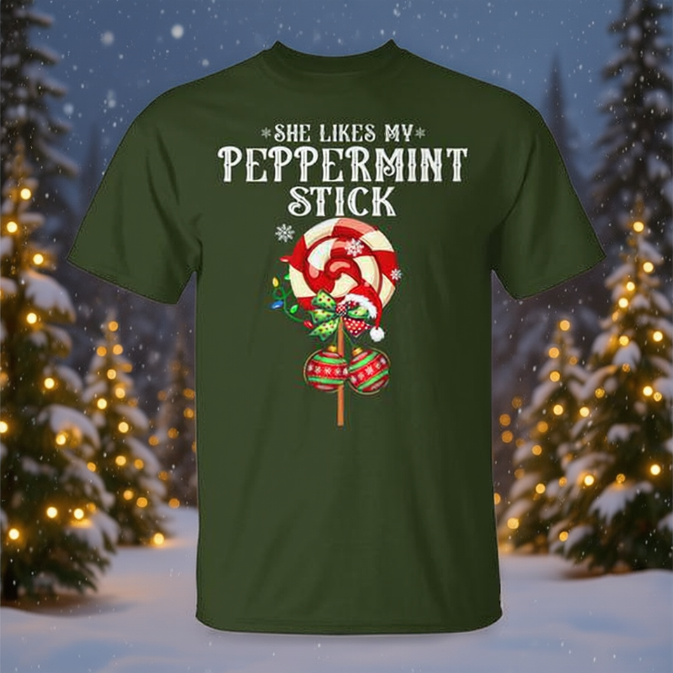 Le piace la maglietta natalizia con il design divertente a tema bastoncino di menta