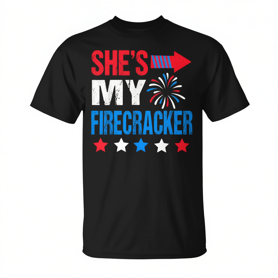 Maglietta coordinata per coppie 'She's My Firecracker' per il 4 Luglio, prodotto promozionale