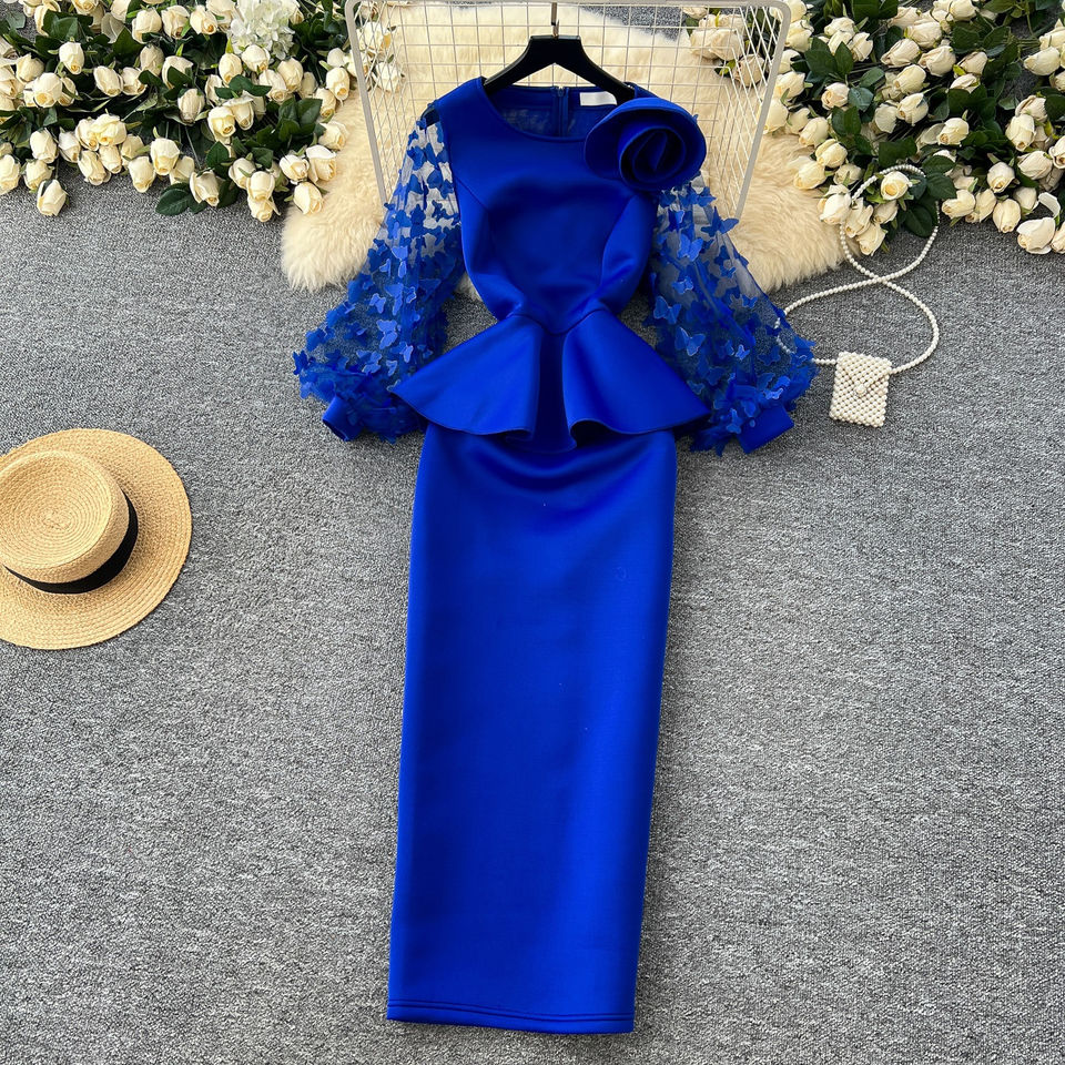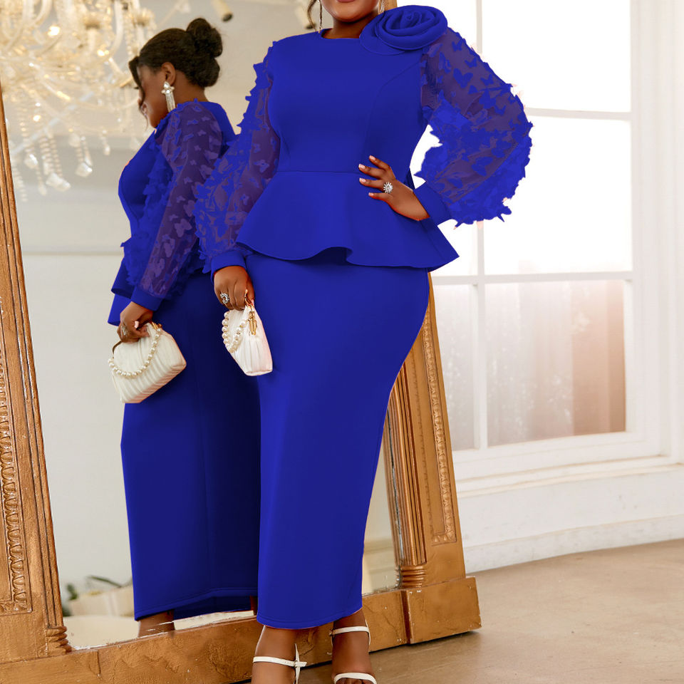 Maniche trasparenti a lanterna con fiori 3D abiti da donna di classe a fiori grandi abiti da sposa eleganti abiti lunghi da chiesa per le donne