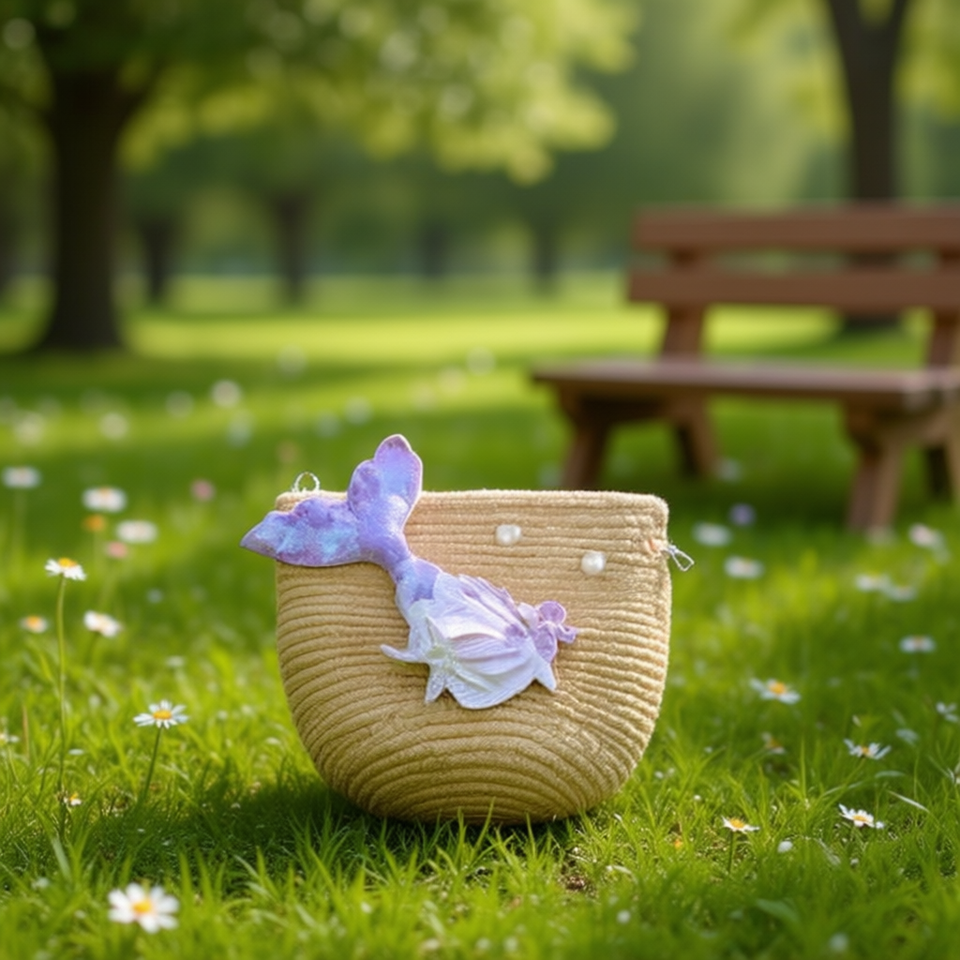 Borsa piccola intrecciata in erba a coda di pesce 12x14 cm per accessorio moda bambini