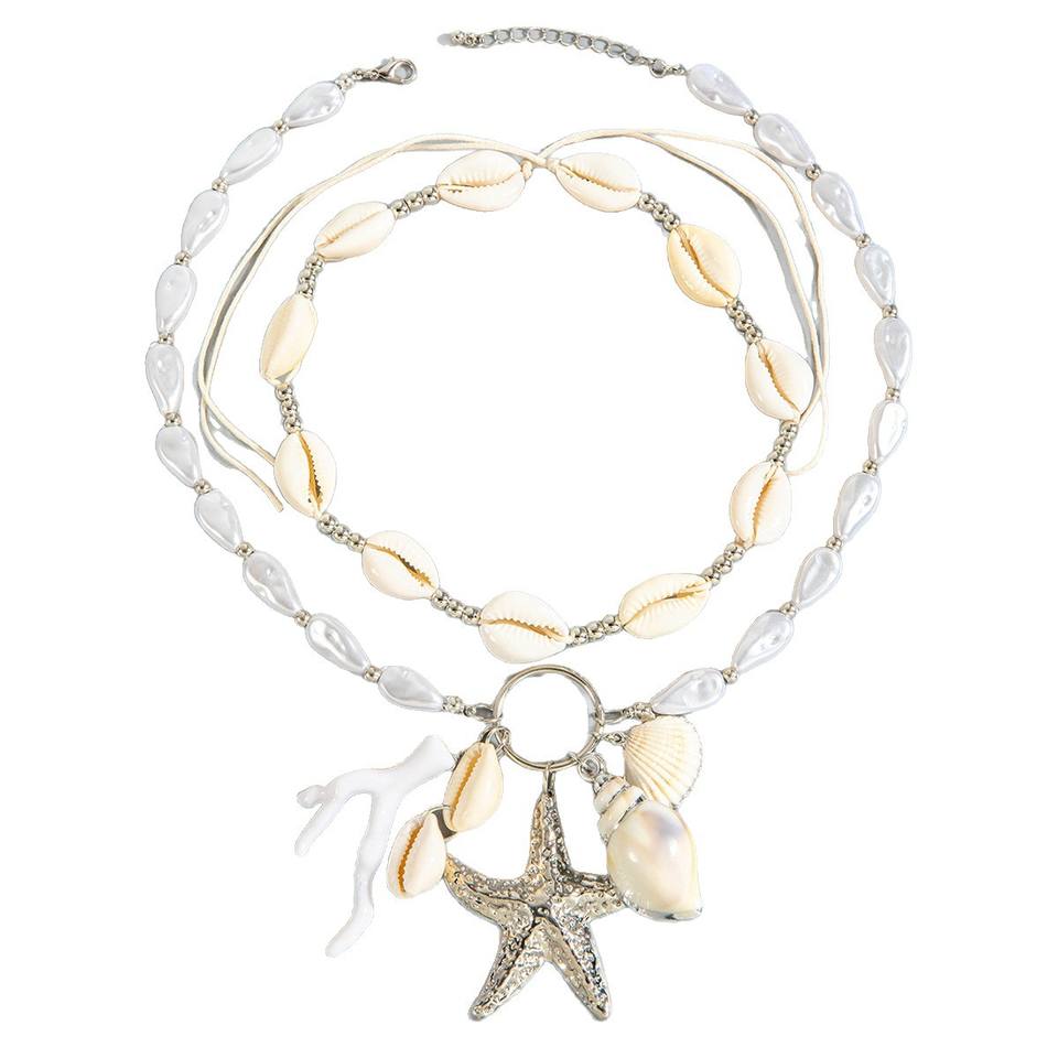 Collana con Ciondolo a Forma di Stella Marina in Conchiglia con Perla Sintetica e Catena in Bambù Esagerata per Donne - Regalo