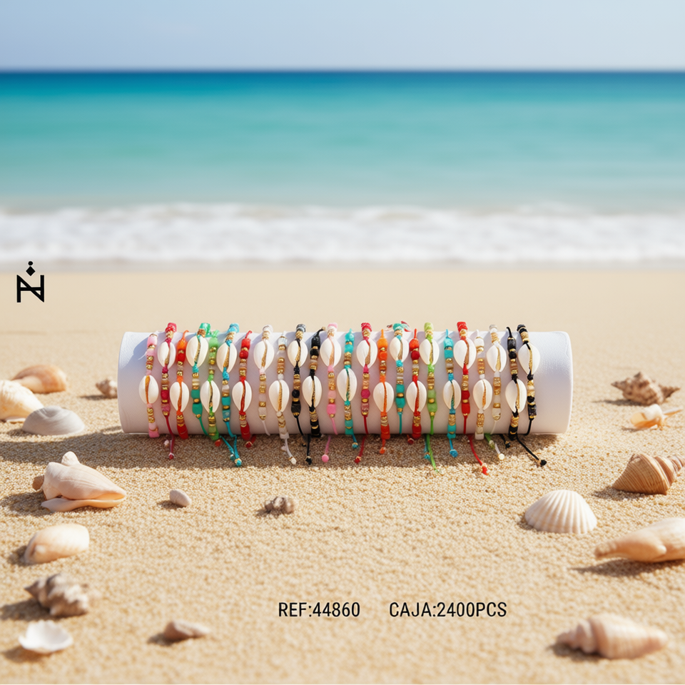 Bracciale in Conchiglia e Pietra PULSERA-TUBO Multicolore con Perline Regolabile Gioielli alla Moda 2400 Pezzi per Scatola